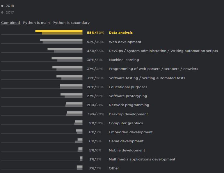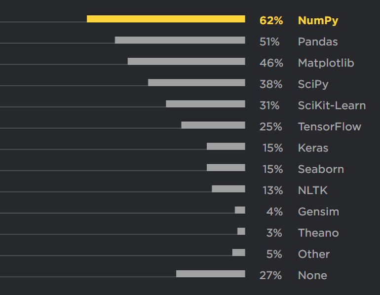 数据科学领域,开发人员对相关技术的应用持续增长。据调查,2018年有高达58%的人员从事数据分析工作。众多开发人员倾向于使用如NumPy这样的库来完成数据相关任务。在机器学习领域,诸如-learn等专有库同样受到开发者的喜爱。随着机器学习应用领域的扩展,其增长率显著,这表明它在数据科学中的重要性日益凸显。不同的库能协助开发者执行多样化的操作,从基础的数据处理到复杂的模型构建。