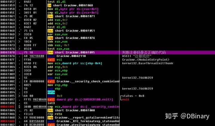 int main(){char iKey[32];char Key[32];char ID[32];int iID=0xabc1d3f;if (IsDebuggerPresent()){MessageBoxA(NULL,\"小样,就你还破解我的程序,回家喝奶去吧\",\"\",MB_OK);return 0;}sprintf(Key,\"%x\",iID*8+123456);printf(\"你的机器码是%xn\",iID);printf(\"请输入注册码:\");gets(iKey);if (strcmp(Key,iKey)==0)printf(\"注册成功\");elseexit(0);}