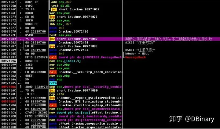 int main(){char iKey[32];char Key[32];char ID[32];int iID=0xabc1d3f;sprintf(Key,\"%x\",iID*8+123456);printf(\"你的机器码是%xn\",iID);printf(\"请输入注册码:\");gets(iKey);if (strcmp(Key,iKey)==0)MessageBoxA(0,\"注册成功\",\"\",MB_OK);elseMessageBoxA(0,\"注册失败\",\"\",MB_OK);}破解手段多样