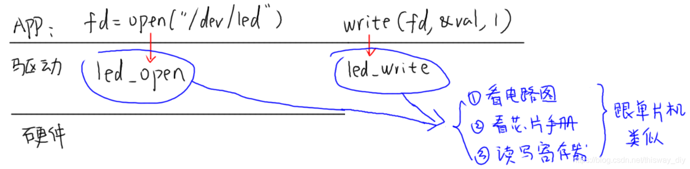 在Linux系统里,程序无法直接操作寄存器,大家普遍采用统一的函数进行操作。这种做法的好处在于,若更换芯片,程序无需做太大调整。举个例子,在开发不同性能的芯片服务器时,只要依托Linux系统,程序基本无需大幅修改。这不仅有助于节省开发成本和时间,而且有利于维护。若要控制如LED灯等设备,程序只能通过调用open等函数间接操控硬件,由驱动程序接收数据并执行硬件操作。