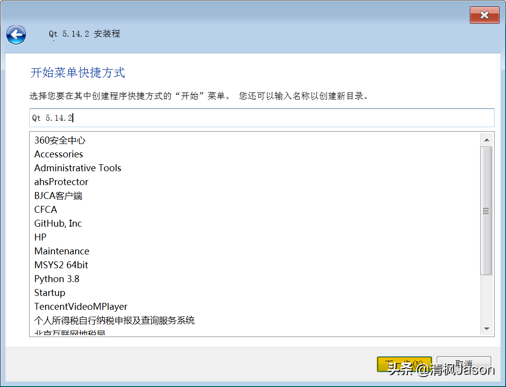 进入开始菜单快捷方式向导界面,你可以随意为软件包在开始菜单里指定一个便于识别的快捷名称。例如,Qt6.0这样的名称既简洁又清晰。这样的设置实际上能方便你日后迅速找到软件的启动入口。