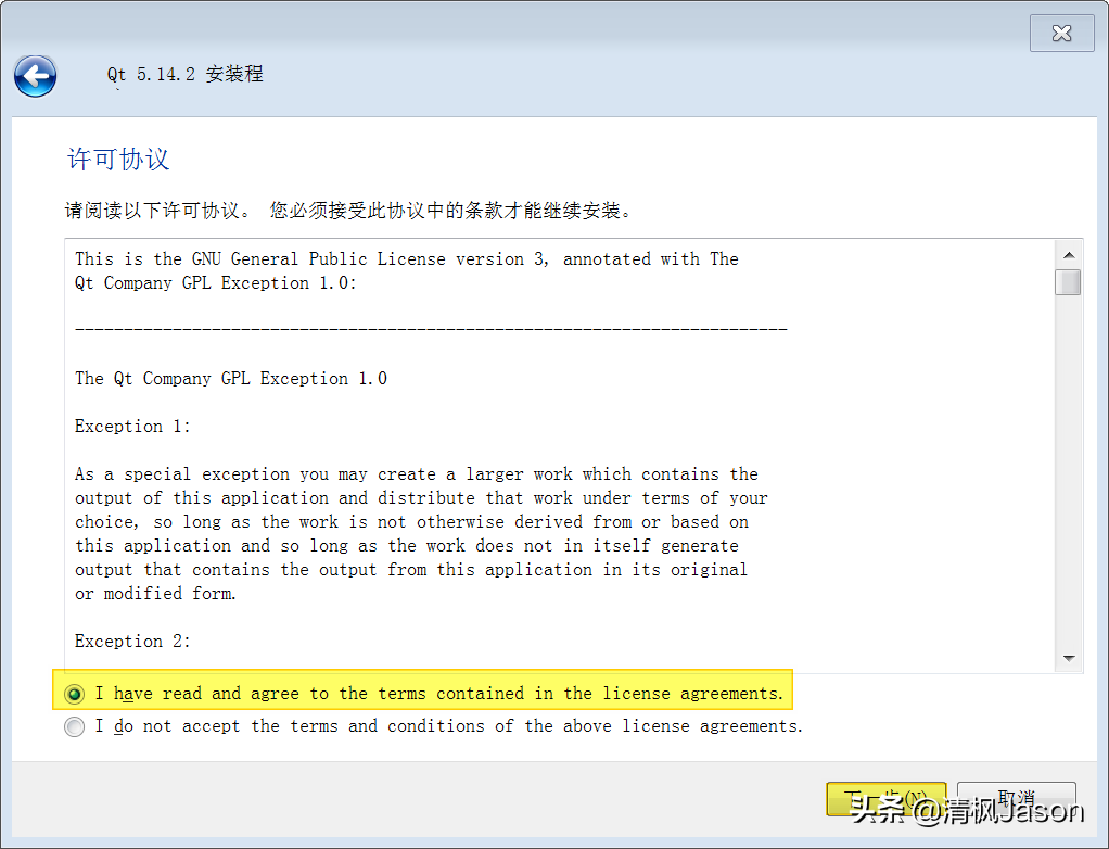 账户验证通过后,进入【QtOpenUasge】向导窗口。此时,务必认真阅读下方的开源Qt义务说明,并勾选同意的复选框。若未仔细阅读而随意勾选,后续使用中可能遭遇法律或道德风险。毕竟,使用开源软件也应遵守其规定。