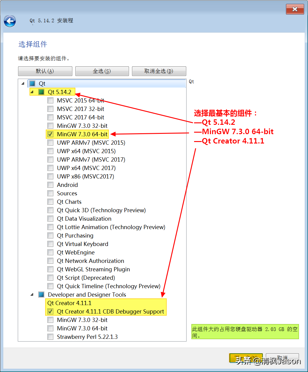 在向导窗口中,我们得根据自身实际需求,动手挑选需要安装的组件。文中提到的Qt4.11.1,它是默认会安装的集成开发环境。然而,除了这个默认组件,其他组件的选择就得考虑我们的开发需求了。比如,如果我们只做桌面端应用开发,那么就不必选择那些专为移动端设计的组件,否则它们只会无谓地占用存储空间。