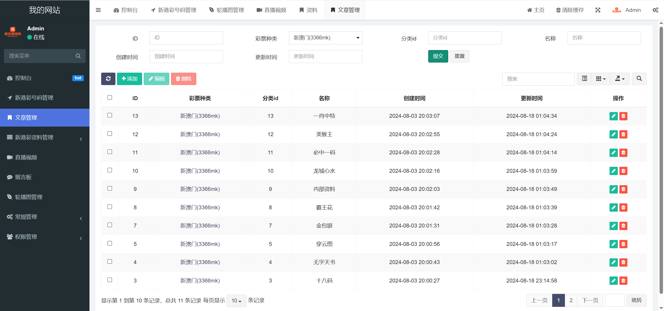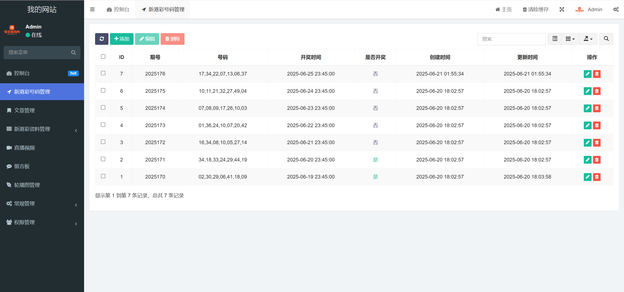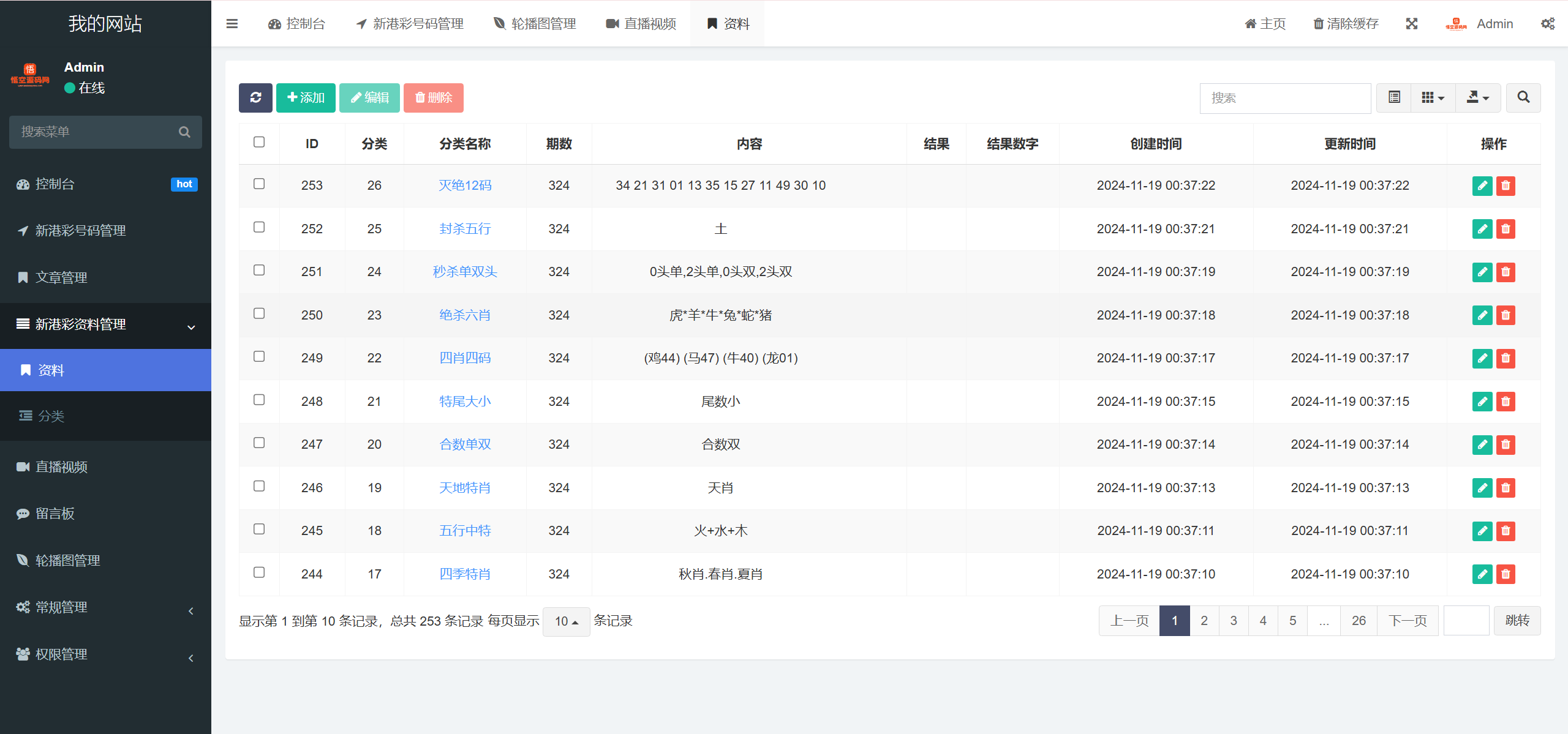 后台倒是显示有很多彩种,前端只有一个,编译后的没办法去修改,后台可以修改开奖、上传图库,感觉前端是阉割版