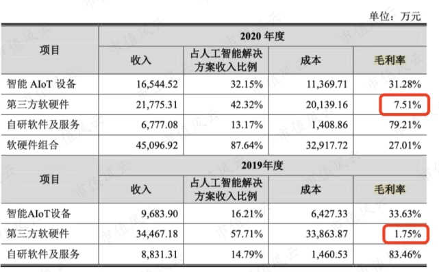 云从科技在人工智能解决方案项目中,经常负责接手外包工作。其核心优势在于算法,也就是软件方面,但硬件部分则需要依赖其他合作伙伴。在需要软硬件协同的人工智能解决方案领域,云从科技因这一限制,在业务推进上显得较为被动。