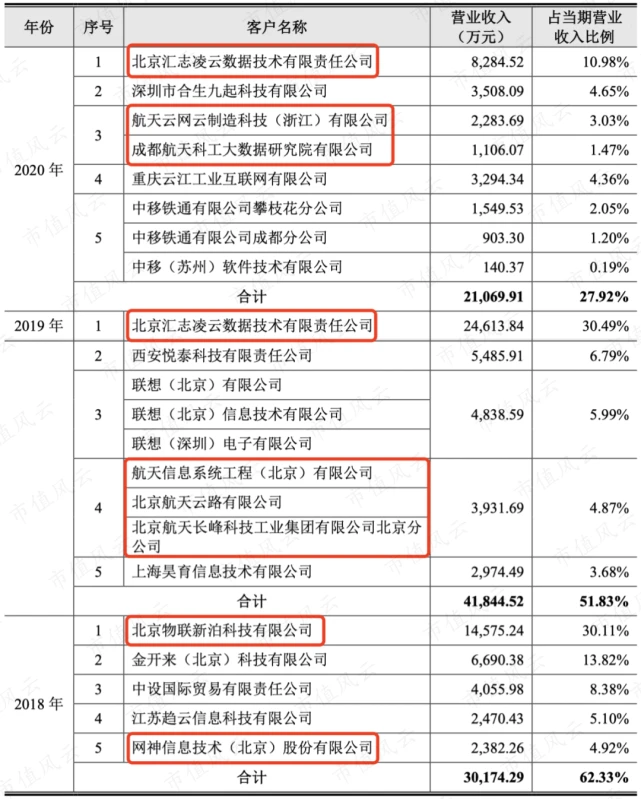 云从科技的进步,离不开与其他企业的携手。作为系统集成服务商的航天信息,与云从科技保持着紧密的合作关系。在2018至2020年间,云从科技向北京航天信息销售的收入,分别占其同期营业收入的31%、33%和15%,显示出客户集中度较高。在业务体系中,云从科技在一定程度上依赖于像航天信息这样的合作伙伴。