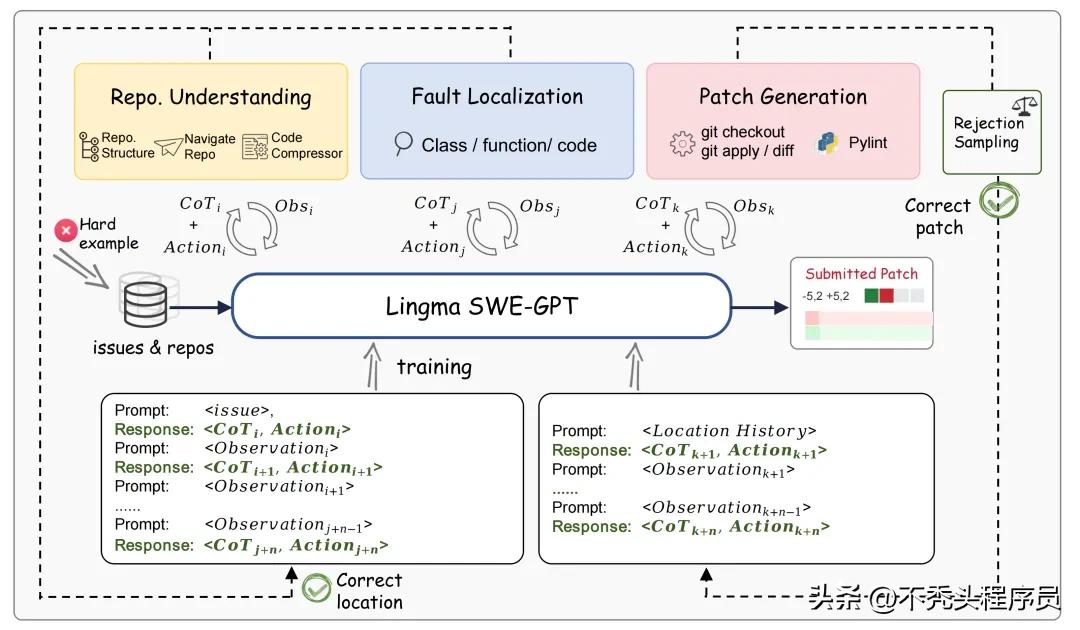 SWE-GPT基于Qwen2.5系列模型,拥有独特的工作方式。它从问题描述和代码库入手。将它们作为输入,相当于为模型设定了起点。比如在修复某金融软件漏洞时,开发者输入错误描述和软件代码库,SWE-GPT便如同资深程序员,开始模拟认知过程。