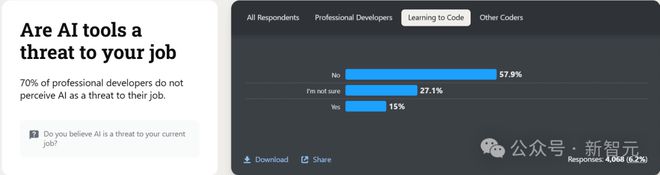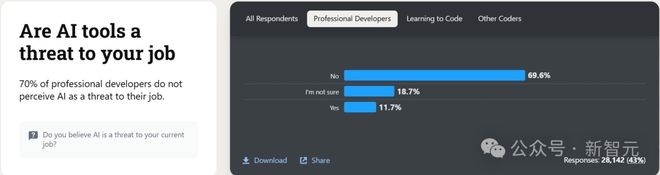 具体调查结果显示,65000名开发者的调查揭示了问题的严重性。这个数字并非微不足道。在庞大的开发者群体中,许多人可能因技能不足而被AI替代,他们的职业安全受到威胁。他们不得不面对学习新技能或转行的艰难选择。