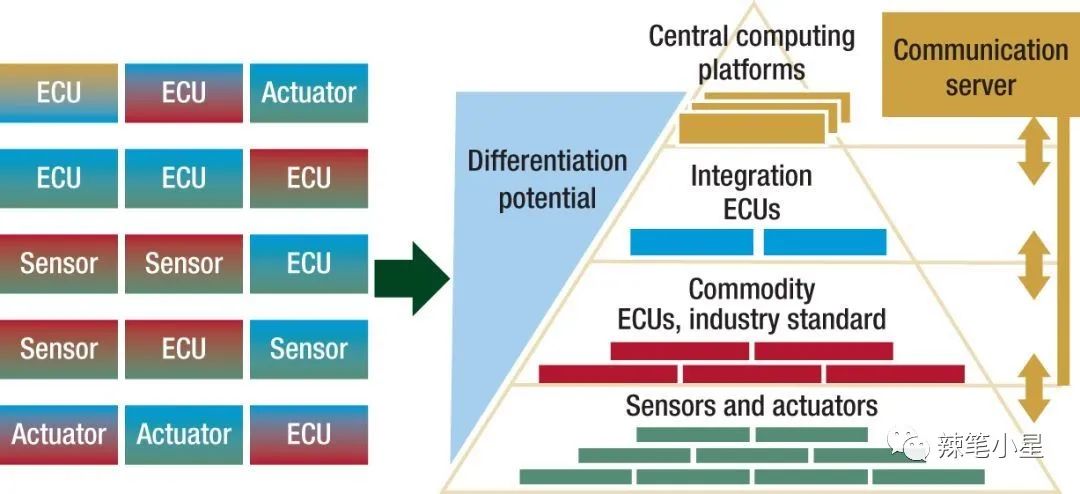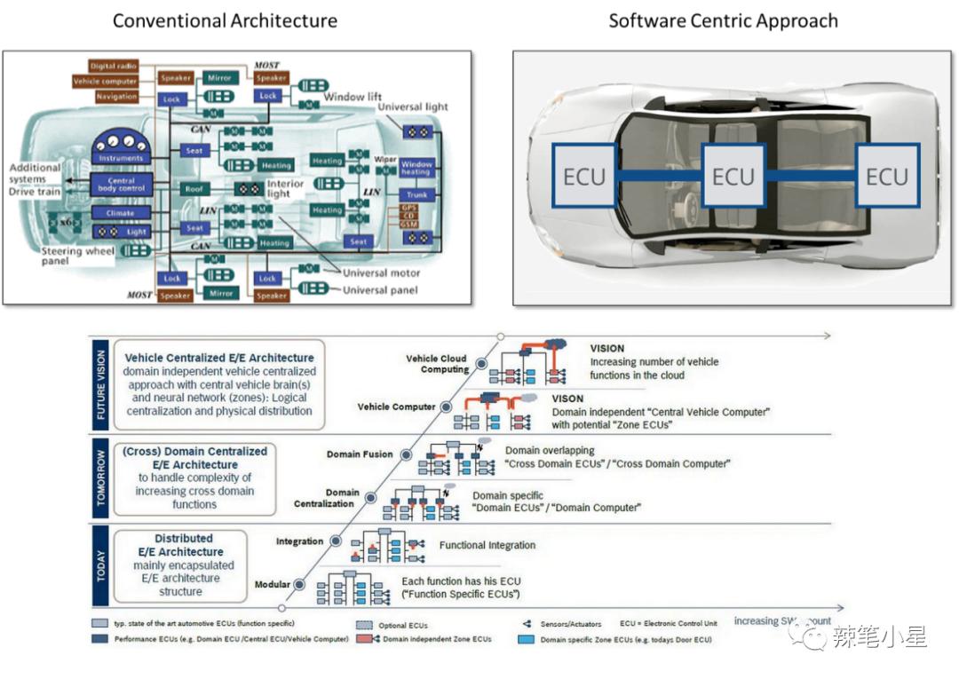 汽车在传统架构上更重视硬件的操控与维护,相比之下,互联网软件架构更专注于信息的流通与处理。在传统汽车架构中,每一个硬件部分都配备有特定的软件模块,负责精确的管控,比如对制动系统软件的管理。而在互联网架构中,通常是大量信息的交流与配合。这两种架构间的显著不同,引发了我们对于它们相遇时可能产生的冲突的深思。
