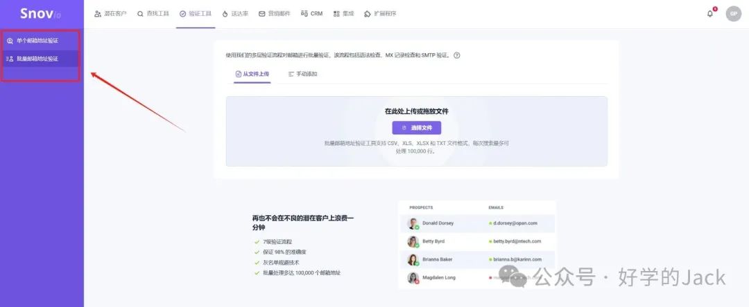 在外贸日常工作中,客户邮箱众多时,确保邮箱有效至关重要。实际上,邮箱失效的原因有很多。员工变动可能导致邮箱不再使用,而且许多通过常规方式获取的邮箱未经验证。一旦客户邮箱数量达到几百几千,若不进行验证和清理,邮件发送的有效地址将显著减少。Snov.io特别强调了邮箱验证的重要性,这降低了邮件在后续营销中无法送达客户的风险。一个常被忽略的问题是,许多海关数据软件中的邮箱很多都是无效的,而Snov.io能解决这一问题。