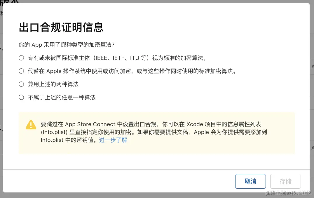 操作应优先安排,否则在构建版本选择时手动输入出口合规证明信息会较为繁琐。在info.list中直接进行指定显然更为合理。我们公司去年的一款国际应用就因指定不当,在审查阶段多次被退回。