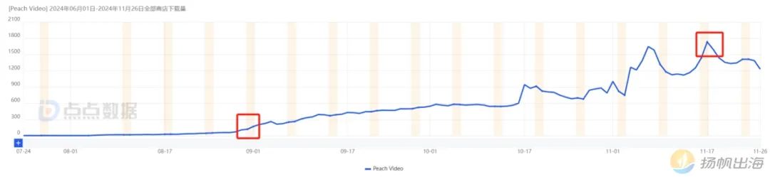8月29日进行了重大更新,产品名称中加入了18+的标识,并且界面设计变得更加精美。这一调整效果显著。随后,产品放弃了之前的“禁止色情”“绿色交友”等宣传,下载量和收入都实现了增长。虽然这种改变看似大胆,但却是顺应了产品的发展趋势。它将目标用户群进一步聚焦于特定年龄段的成年人,这类用户可能更适应1v1视频社交的模式。同时,界面的升级使得用户在视觉上更易接受产品,提升了产品的吸引力。从数据上看,日下载量显著增加,成功摆脱了之前的下载量低迷状况。