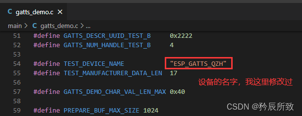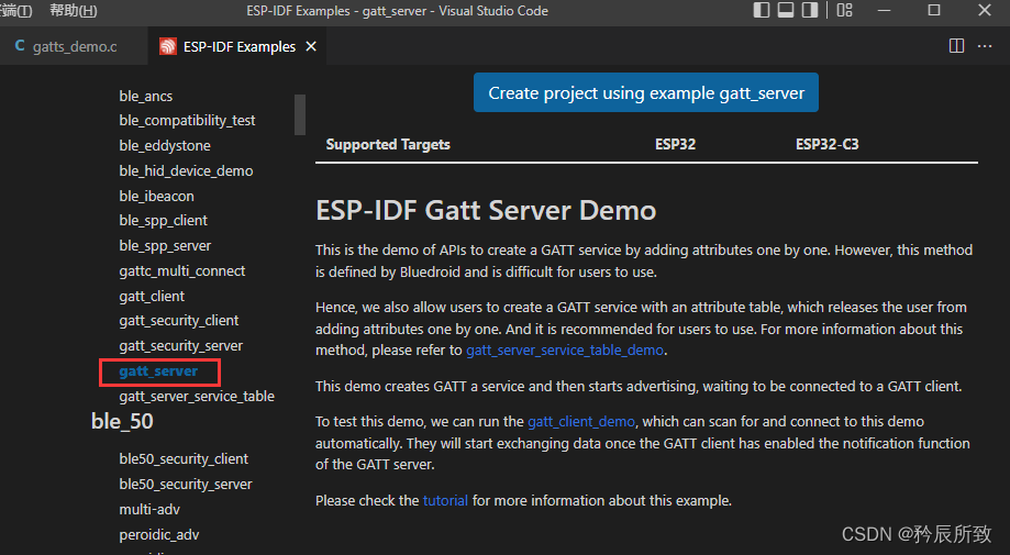 选定示例后,无需深入探究代码的具体实现细节。初次测试时,更倾向于关注那些显而易见的部分,比如设备名称,总想着给它换一个听起来更酷的名字。之后,便开始编译并烧录代码。虽然编译所需时间比文中示例和工程要长,但这些小挫折并未能阻止我完成测试的坚定决心。