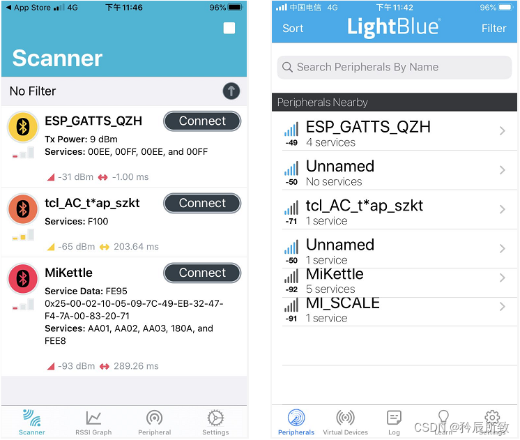 连接开发板蓝牙的首要任务是挑选合适的调试工具。上网一搜,发现很多人已经分享了他们的经验。起初,我打算下载nRF的,因为之前使用过其相关芯片和桌面版,但在安卓手机的应用商店里并未找到。另一个工具同样在应用商店里找不到。无奈之下,我只能选择BLE调试助手。虽然后来在苹果应用商店找到了nRF,但看到另一个工具的评价人数更多,最终还是下载了它。这些工具的界面各具特色,在没有深入了解之前,选择哪个完全取决于个人喜好。