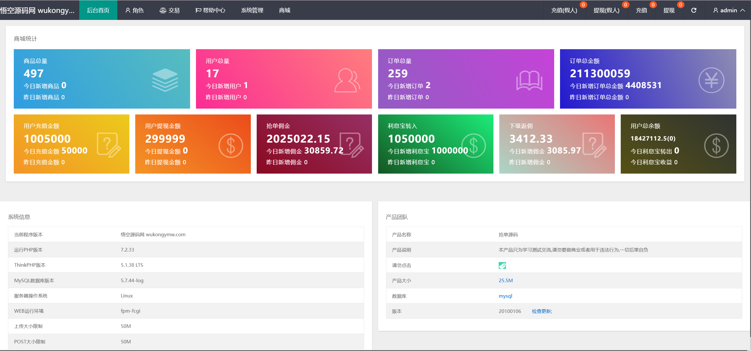后端测试环境:Linux系统CentOS7.6、宝塔面板、Nginx、PHP7.2、MySQL5.7,运行目录public,伪静态thinkphp,建议开启SSL