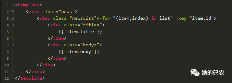 标题内容export default {data() {return {list: []}},methods: {// 获取新闻列表getNewsList() {}},onLoad() {this.getNewsList();}}.news {padding: 50rpx 30rpx;.newsList {min-height: 200rpx;border-bottom: 1px solid #e4e4e4;.titles {font-size: 28rpx;font-weight: 700;color: #000;}.bodys {font-size: 26rpx;font-weight: 500;color: #00007f;}}}
