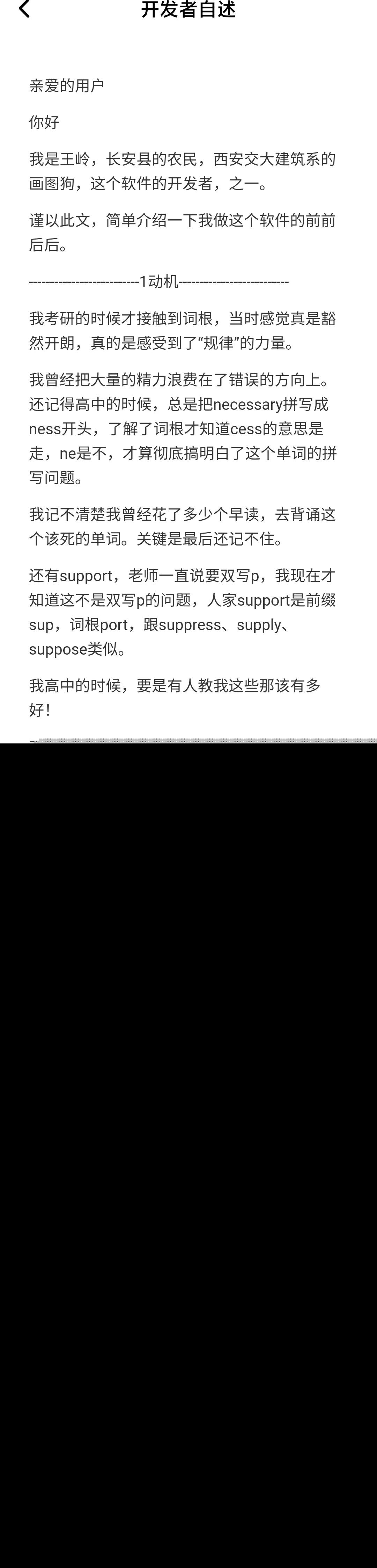 思维导图清晰呈现了单词的构成。可以设定学习目标,比如四级考试,非常适合用来辅导孩子。虽然免费,但会有广告,但支付15元就能去除广告。开发者还提供了详细的介绍,读后让人产生强烈共鸣,感觉找到了适合自己的学习方法。