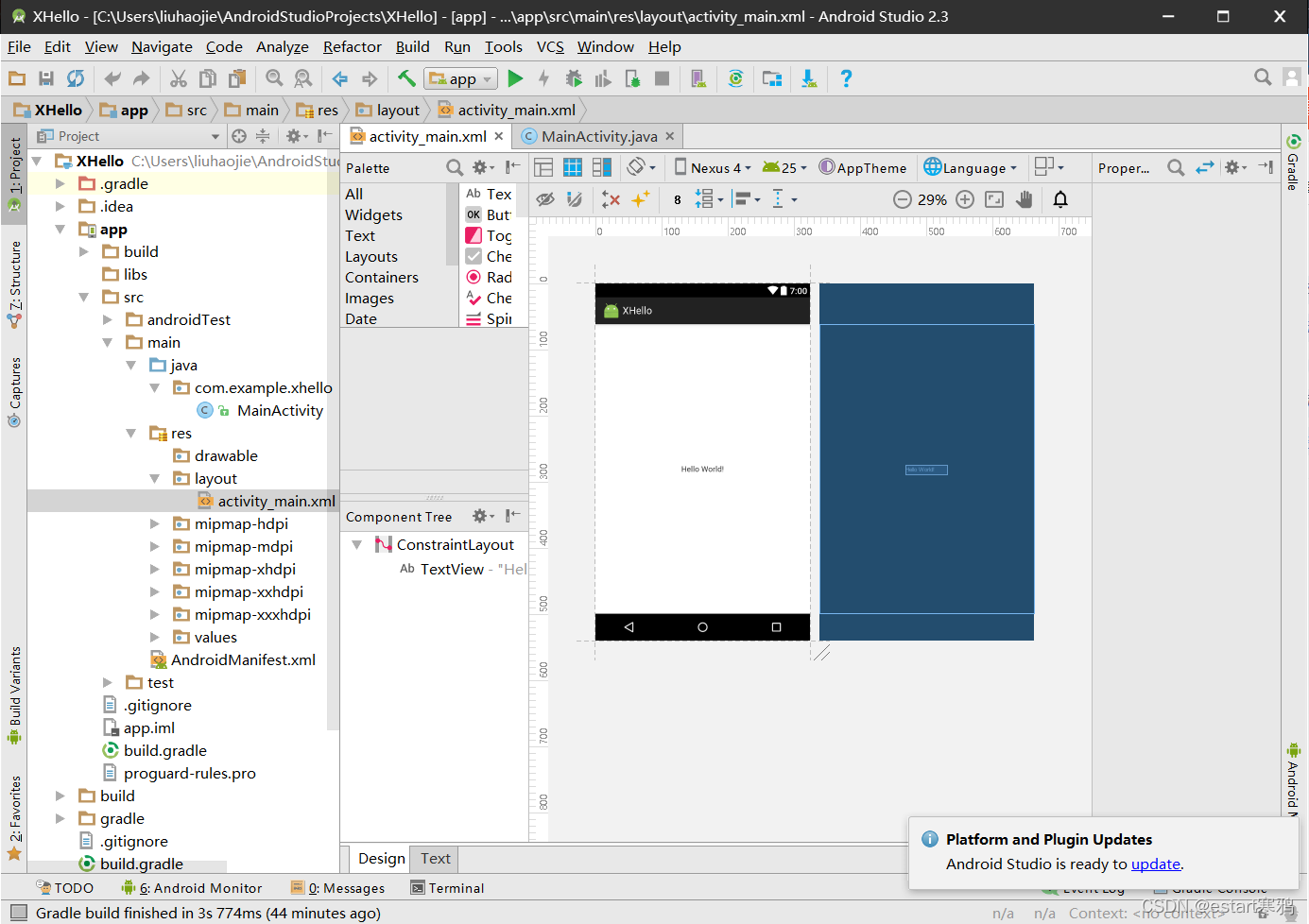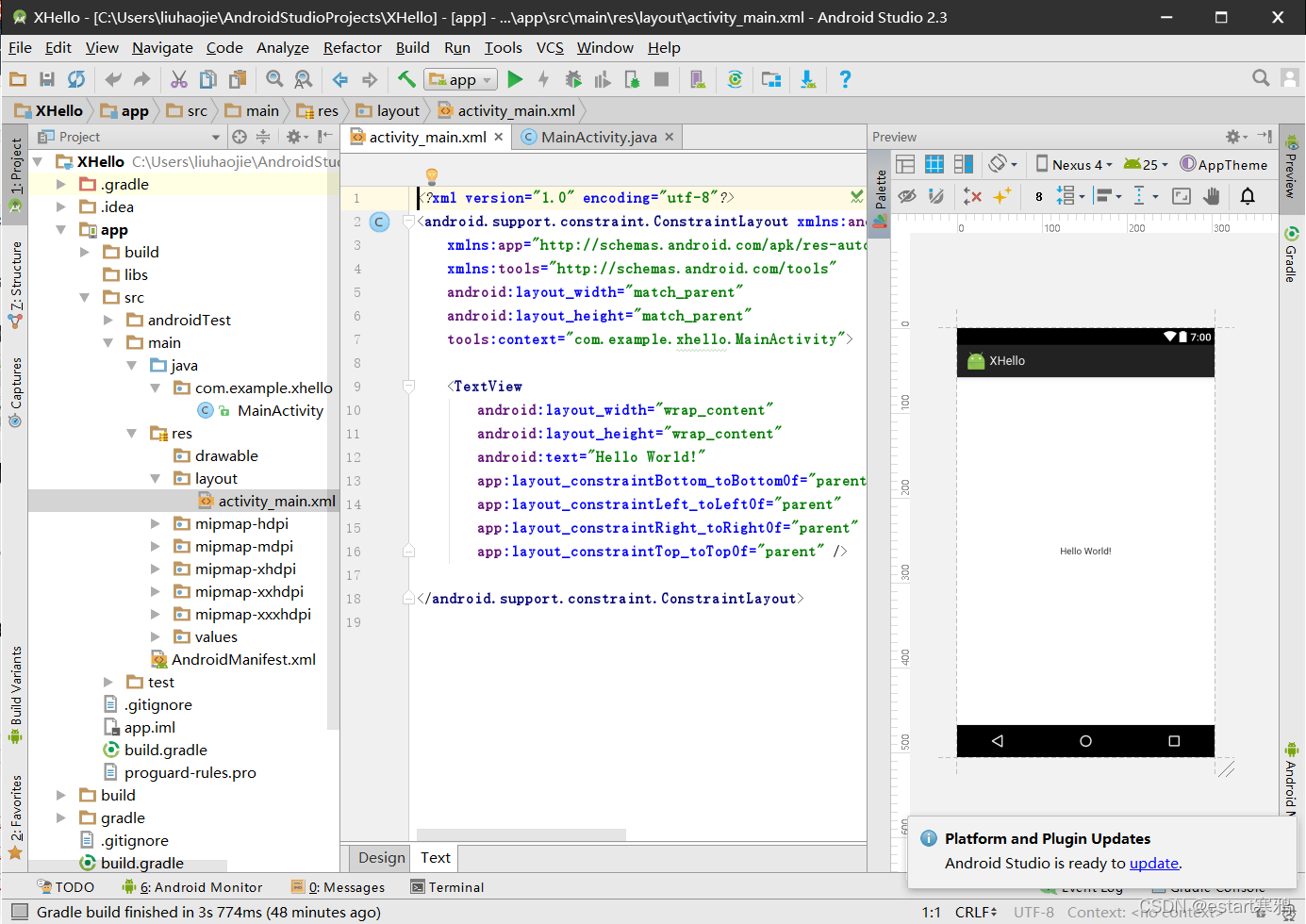 查看res目录下的xml布局同样关键。需要留意根布局的种类及其变化,比如从约束布局转为线性布局等。布局中控件的属性配置,比如TextView控件的text属性设置为“helloworld!”,这些都是开发中实际操作的体现。