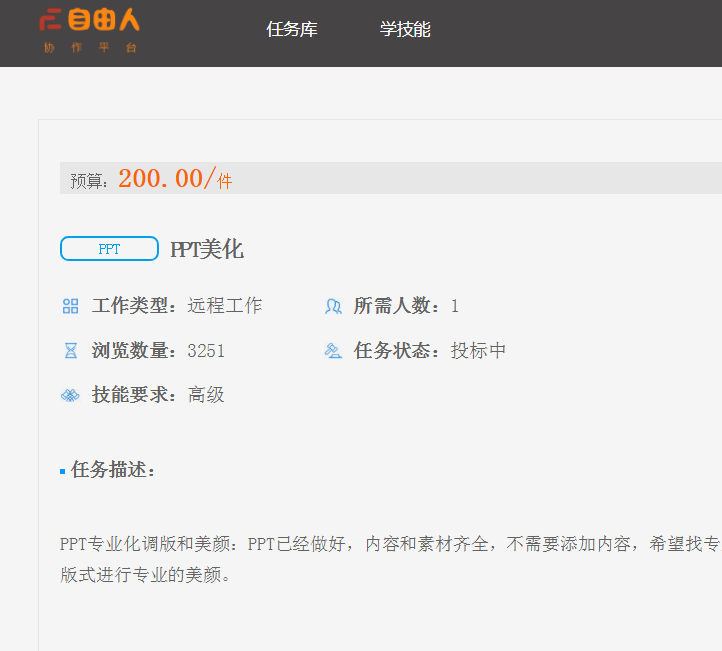 一位精通PPT制作的职场人士,在业余时段可以接受订单赚取收入。尽管需要关注工作进度,但所得报酬颇丰,且仅需半小时即可完成,性价比极高。