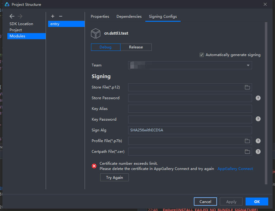在开发阶段,AGC调试证书数量有上限,最多只能使用两个。一旦超过这个数量,便无法再创建新的证书。这种情况是开发调试和安装过程中可能遇到的难题,因此开发者需要格外留意。