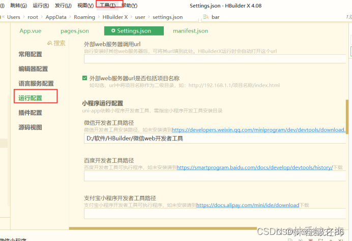 配置运行微信开发者工具