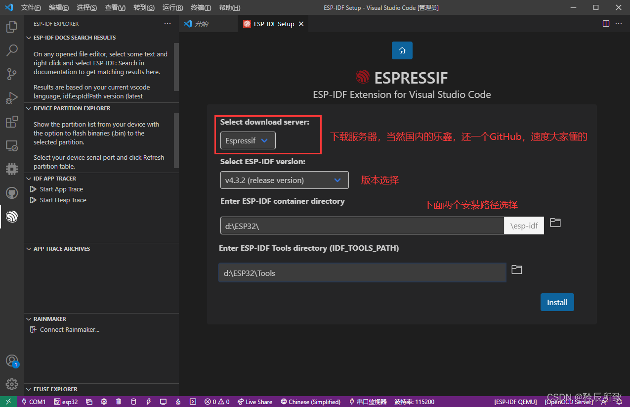 对于ESP32-C3开发,自己对Arduino环境使用起来很是不习惯,既然乐鑫官方都出对应的环境,还是来试试官方环境