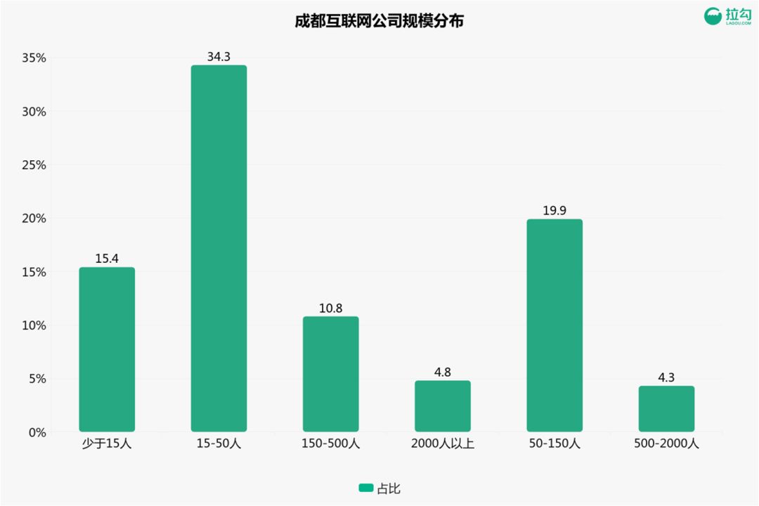 在成都,多数企业尚未获得融资,其中有一半是员工数量不超过50人的初创企业。这些小企业犹如星星点点,蕴藏着巨大的成长空间。它们是成都互联网产业不可或缺的一部分。尽管这些公司的规模不大,但它们的团队基础稳固,正积极寻找人才以扩大规模。