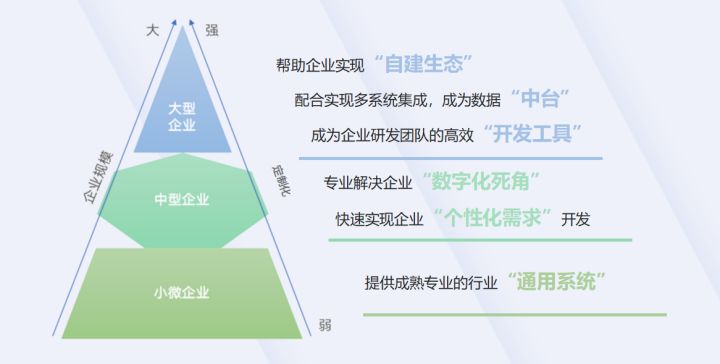 中大型企业迫切需要数字化转型。但传统的软件开发方法往往难以满足这一需求。这些方法既复杂又昂贵。例如,某连锁企业在拓展业务时,希望升级其信息系统,但传统开发模式无法与分店的快速扩张和地区间的管理差异同步。这时,低代码平台便能提供快速更新和迭代的能力。
