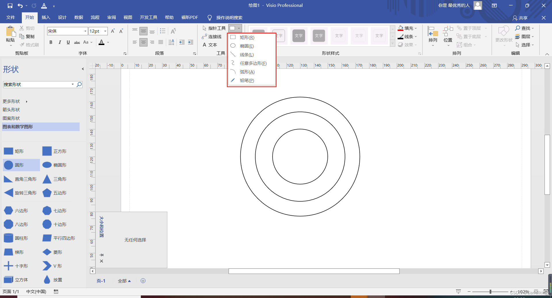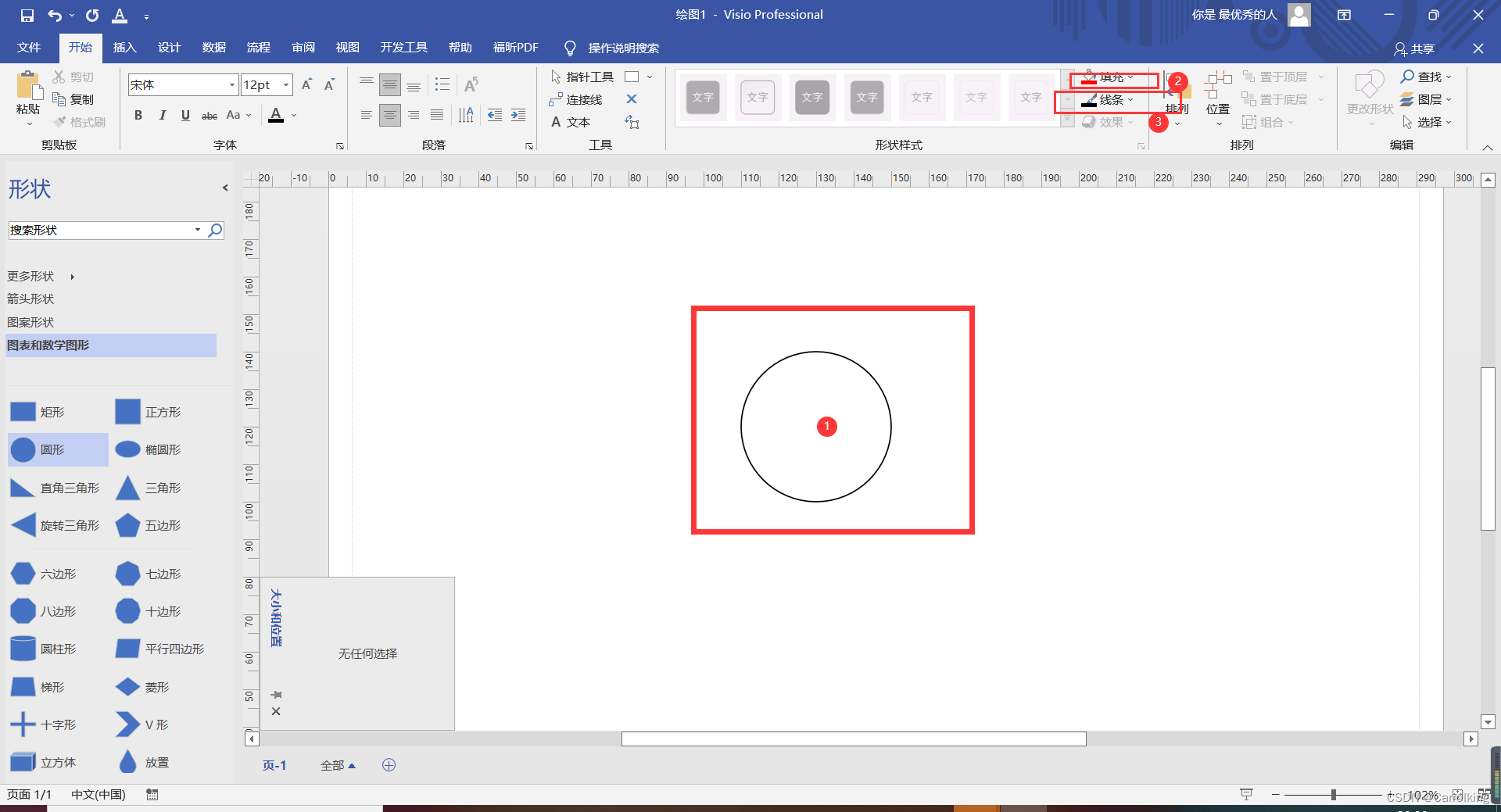 首先,我们要添加基础图形。比如,图中选圆,只需点击并拖动鼠标至画布即可。接着,进行一些基本设置,比如选择图形无填充,这样绘图更便捷。此外,还可以选择黑色线条,以及调整线条的粗细和颜色。