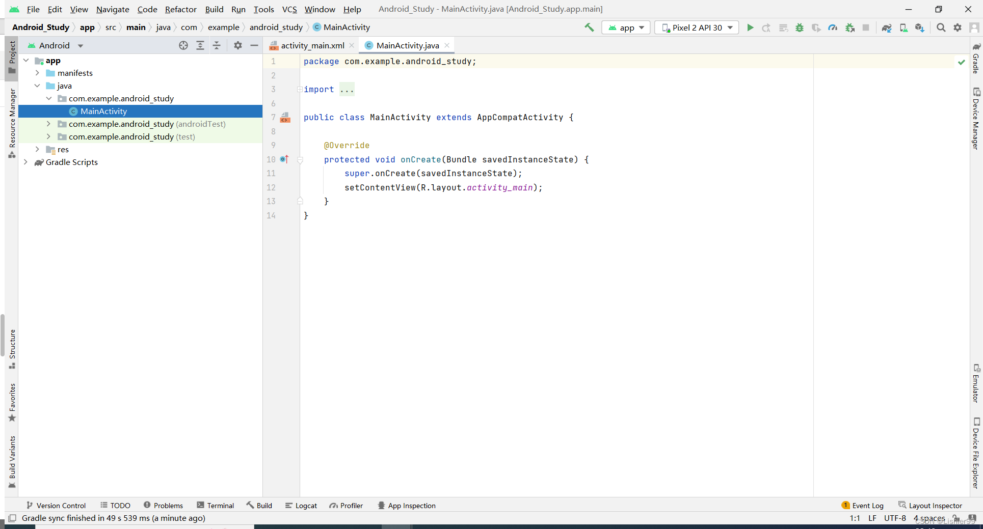 编译完毕后,需启动程序以检验是否存在其他问题。首先,开启模拟器,以运行测试App为例,我们选用PXel2API30模拟器,它配备了相应的系统镜像。待模拟器启动,便可以运行App。启动App的方式有两种:一是通过菜单选择“运行”后点击“运行‘app’”,二是直接点击模拟器旁的运行按钮。