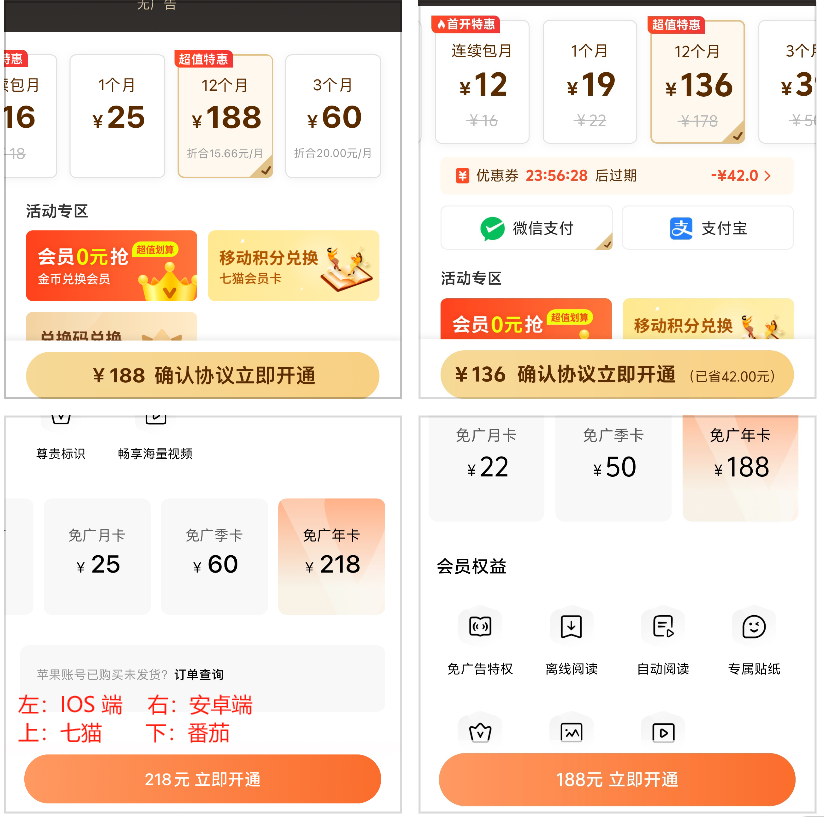 数据显示,同一服务在iOS和安卓系统上的收费常常不一致。以地震预警应用为例,iOS用户需支付10元才能启用预警功能,而安卓用户则可免费使用。B站推出的包月充电服务,在高档位时iOS的价格也比安卓要高。此外,七猫、番茄小说的会员费用,iOS平台同样更高。在统计的50个付费项目中,有19项在安卓平台提供更多折扣,占比高达38%。这一比例反映出iOS用户可能经常遇到更高的消费压力。