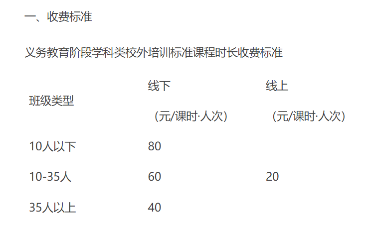 费用规定相当详细。线下课程,人数少于10人的班级每人每节课80元,10到35人的班级每人每节课60元,超过35人的班级每人每节课40元。线上课程则统一为每人每节课20元。线下课程的标准课时为45分钟,线上课程为30分钟。这样的安排让家长们对培训费用有了明确的认识。培训机构必须公开培训的相关信息。这样做便于家长们挑选出既合法又满意的培训机构。
