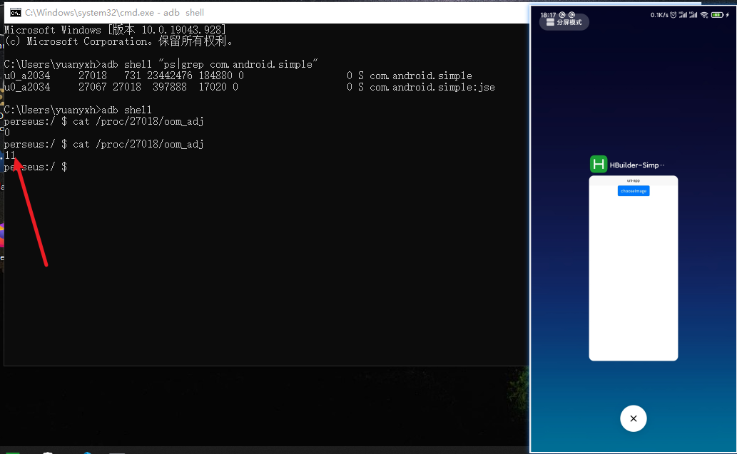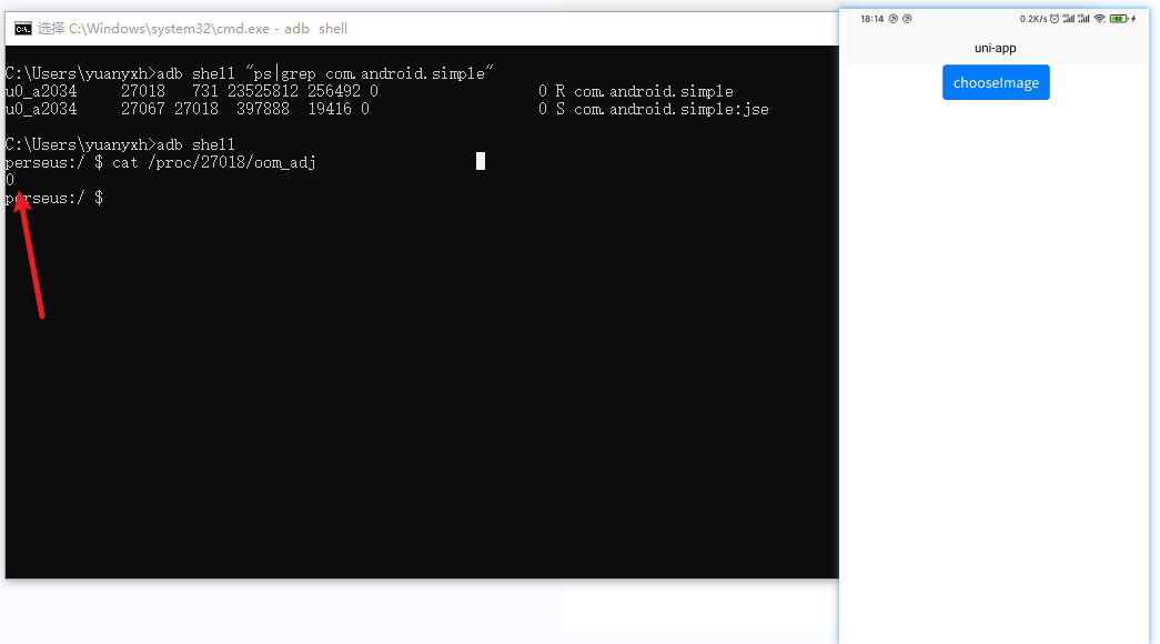 - adb shell \"ps|grep your package name\"