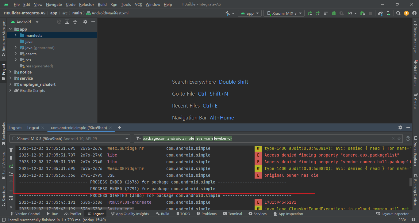 真机复现闪退查找日志