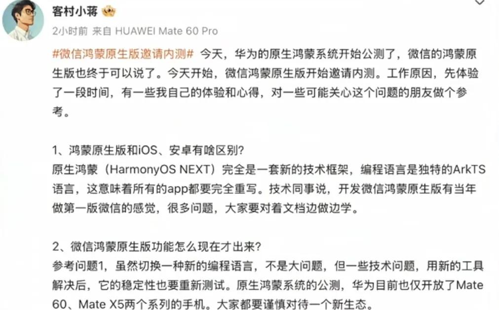 鸿蒙版微信与iOS、安卓版存在差异,其背后的鸿蒙系统含有复杂技术。这系统是中国人自主研发的手机操作系统。它的独特性展现了华为的毅力与雄厚实力,值得我们深入研究。