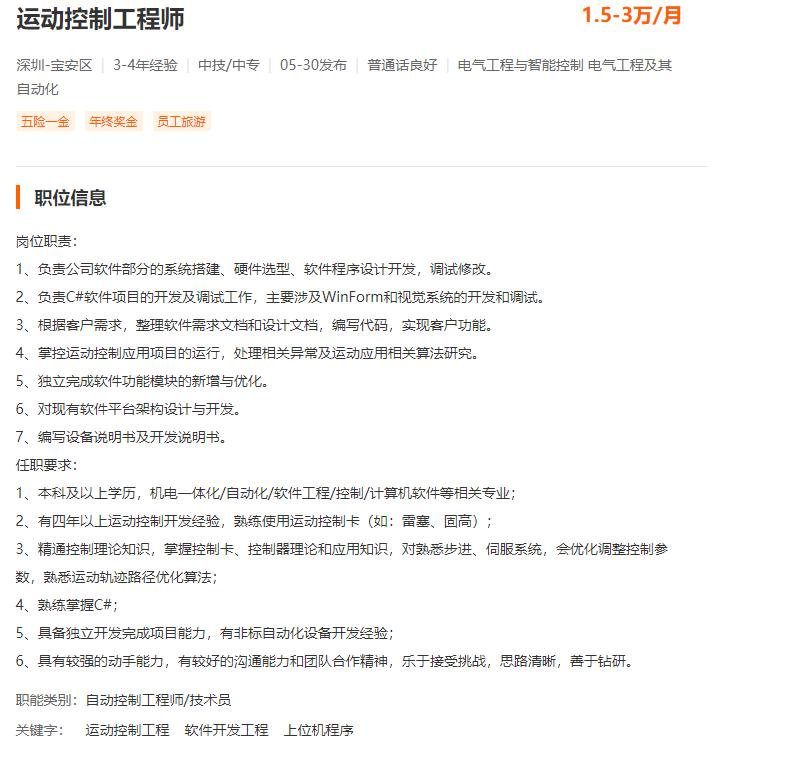 运动控制工程师岗位