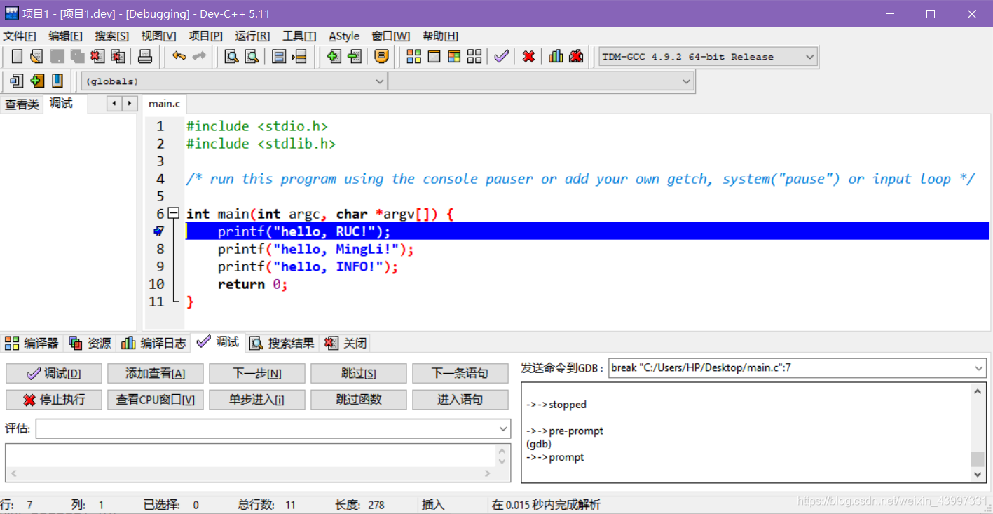 调试功能很关键。其一,需在程序中设置断点。其二,启动调试模式后,程序会在断点处停下。其三,左下角具备添加查看变量的值以及下一步等功能。这些功能在查找程序错误等情形下十分有用。