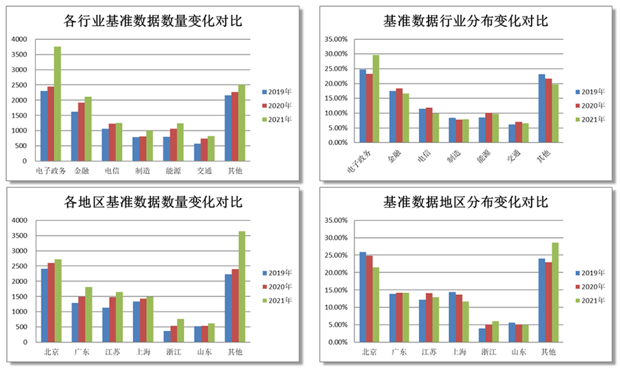 2021年,各行业的基础数据呈现不同增长趋势。在电子政务和金融等领域,增长幅度尤为显著。尤其是电子政务,其数据占比近三成,增长显著。这反映出电子政务在信息化建设等领域取得了显著进步,且该领域的数据投入大幅提升。