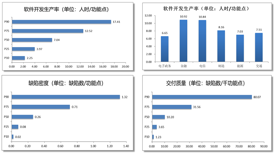数据质量同样引人注目,过去五年中,产品缺陷率总体呈下降趋势。以2021年为例,整个行业的缺陷密度P50值达到了0.26个缺陷数/功能点,这一数据表明行业交付质量持续向好。这些关键数据充分反映了行业的当前状况,使我们能够清晰地洞察行业发展的脉络。