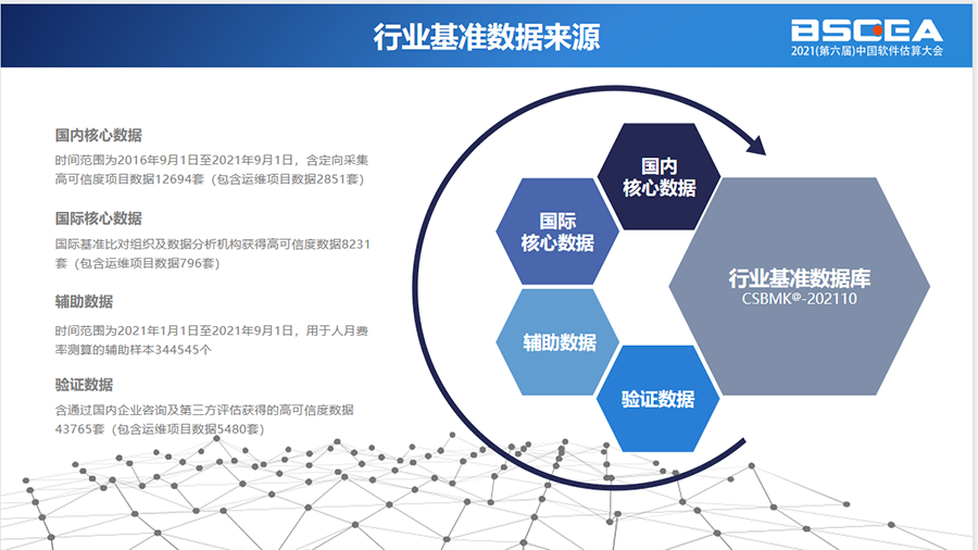 数据来源非常丰富。CSBMK-行业基准数据库包含了国内外多个行业的数据,比如电子政务和金融等。一共有20925套高可信度数据,比去年多了3179套。此外,还有许多外部验证和辅助数据。比如,2021年人月费率测算的辅助样本很多,验证数据有43765套,其中运维项目数据有5480套。这些多样化的数据来源确保了数据的准确性。