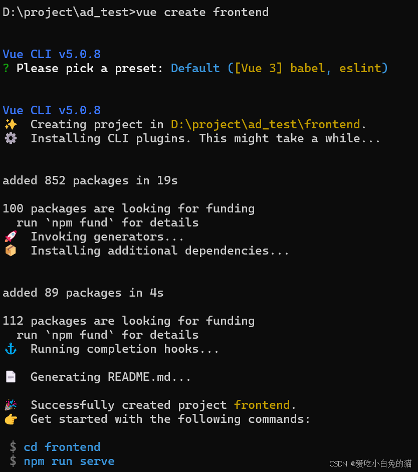 vue create frontend