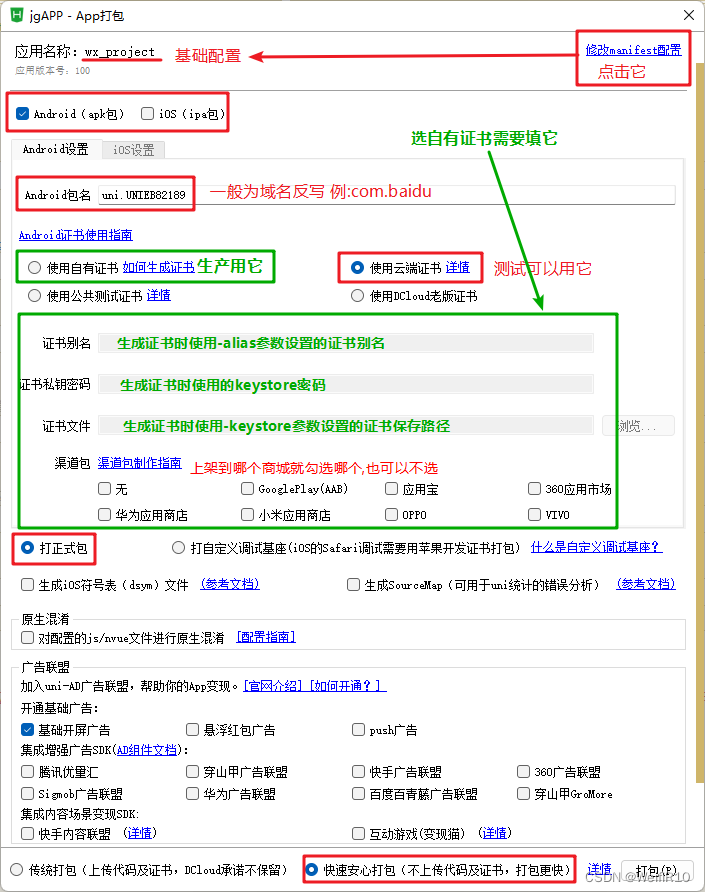 开发者们常用云打包这一方法。以uni-app官网为例,选了发布原生App并通过云打包,就会跳转到特定页面。要是选了自定义调试基座,配置就能立即生效。像很多外包公司给中小客户做APP时,这个步骤能保证在云端高效制作APP。开发者中心在点击“重新获取”后,会自动生成所需数据。