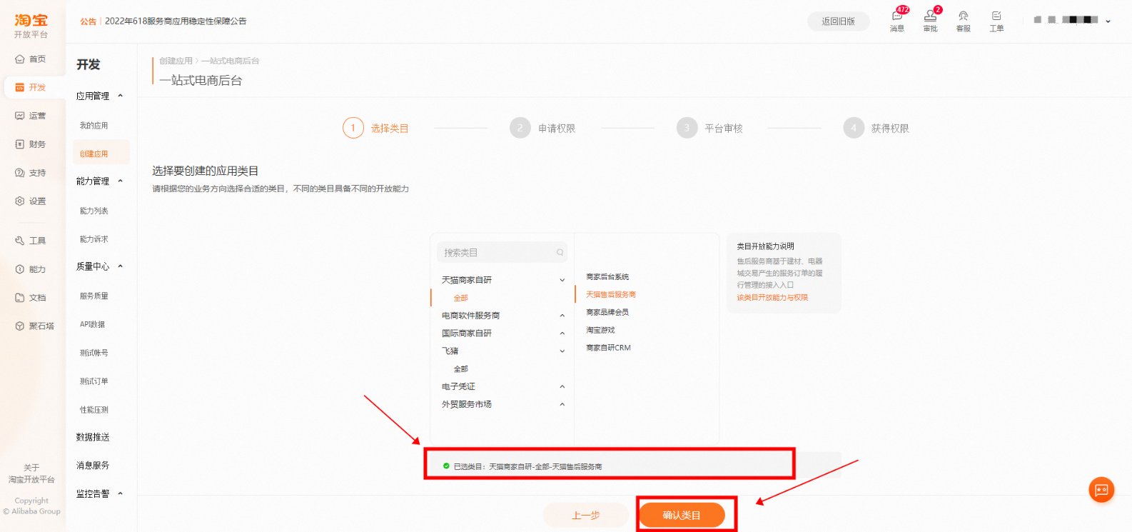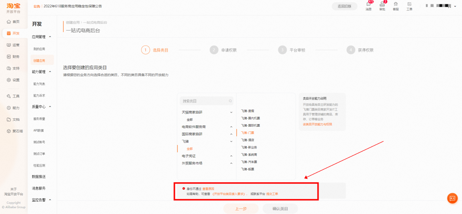 进入开发环节。首先,访问开放平台的主页,点击控制台。然后,转到创建应用的页面。在此页面,挑选商家系统自研接入选项,点击“开始创建”按钮。接下来,选择一站式电商后台,开始构建商家后台系统应用。在确定开发类别后,需要进行资质审核。若类别审核未通过,需查明原因并提交相关信息。注意,任何步骤的失误都可能导致应用创建失败。