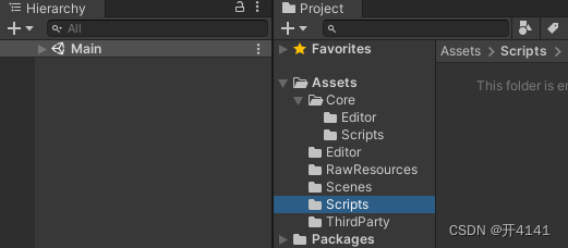 同样,我们不能忽略诸如构建Unity项目文件夹结构这类细节。比如,要留意场景文件夹中场景的重命名,或者自己动手创建;另外,合理设置存放核心资源、运行代码和游戏资源的文件夹,对后续的开发工作更有助于保持条理。