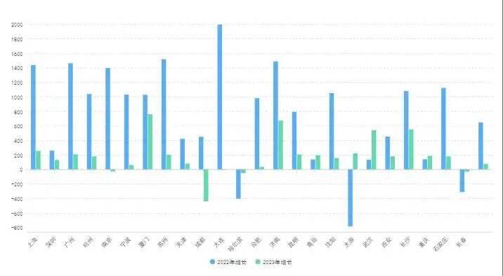 2023年涨幅普遍下降