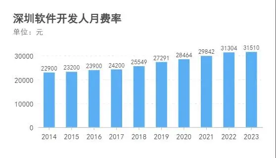 自2014年始,北京、上海、深圳的软件开发人月费率已达到较高水平,超过了三万元。到了2023年,尽管涨幅有所收窄,但它们的发展趋于稳定,依然位居全国前列,彰显了中国软件行业人月费率的高水准。这一现象与当地的经济状况、科技资源的集中以及人才密集度紧密相关。此外,这也反映出这些地区的软件开发成本较高,吸引了大量高端软件企业汇聚于此。