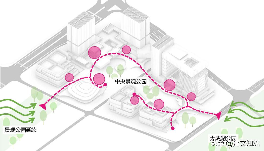 公园化思维是城市建设中充满创意的探索。现代城市急需增添绿色。该地地处大成湖公园与科创慧谷交通要道,紧邻城市绿化主轴。将公园景观融入场地,贯穿创新创业孵化区。像国外某个成功的城市规划,因融入众多公园元素而备受青睐。此举满足了人们对自然与现代都市生活相结合的愿望,使人们能在此呼吸新鲜空气。在此理念下,公园不仅是城市的装饰,更是城市活力的关键所在。