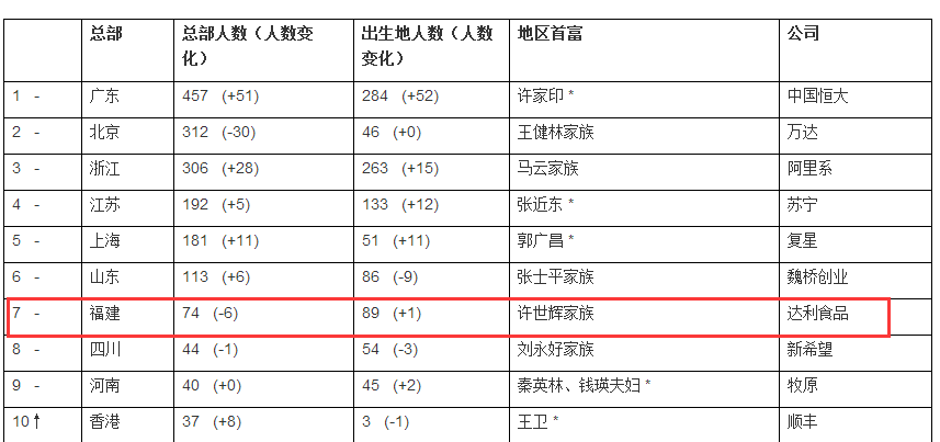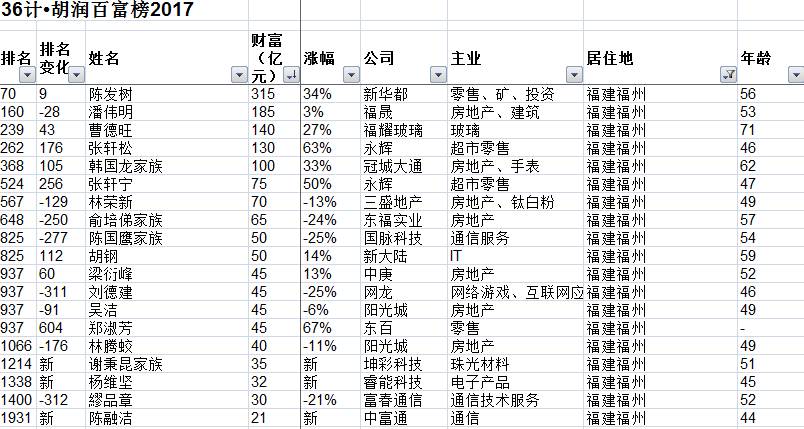 闽商在财富榜中的位置