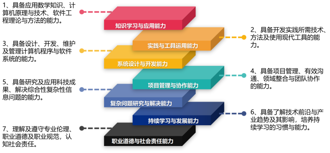 该专业教育强调以学生为中心,追求成果,并不断优化。学院进行了全面调研。他们与校友交流,收集职场意见,与雇主深入沟通,探究人才需求趋势,并对毕业生情况进行评估,以此来衡量教学成效。此外,学院还邀请了大学教授、企业专家及校友代表组成专业咨询团队。该团队深入研究产业需求。他们结合学校与学院的教育目标,构建了一套以雇主需求为指引的专业人才培养体系。比如,在确定专业核心能力时,就是依据这一体系,确保培养的学生能够满足市场需要。