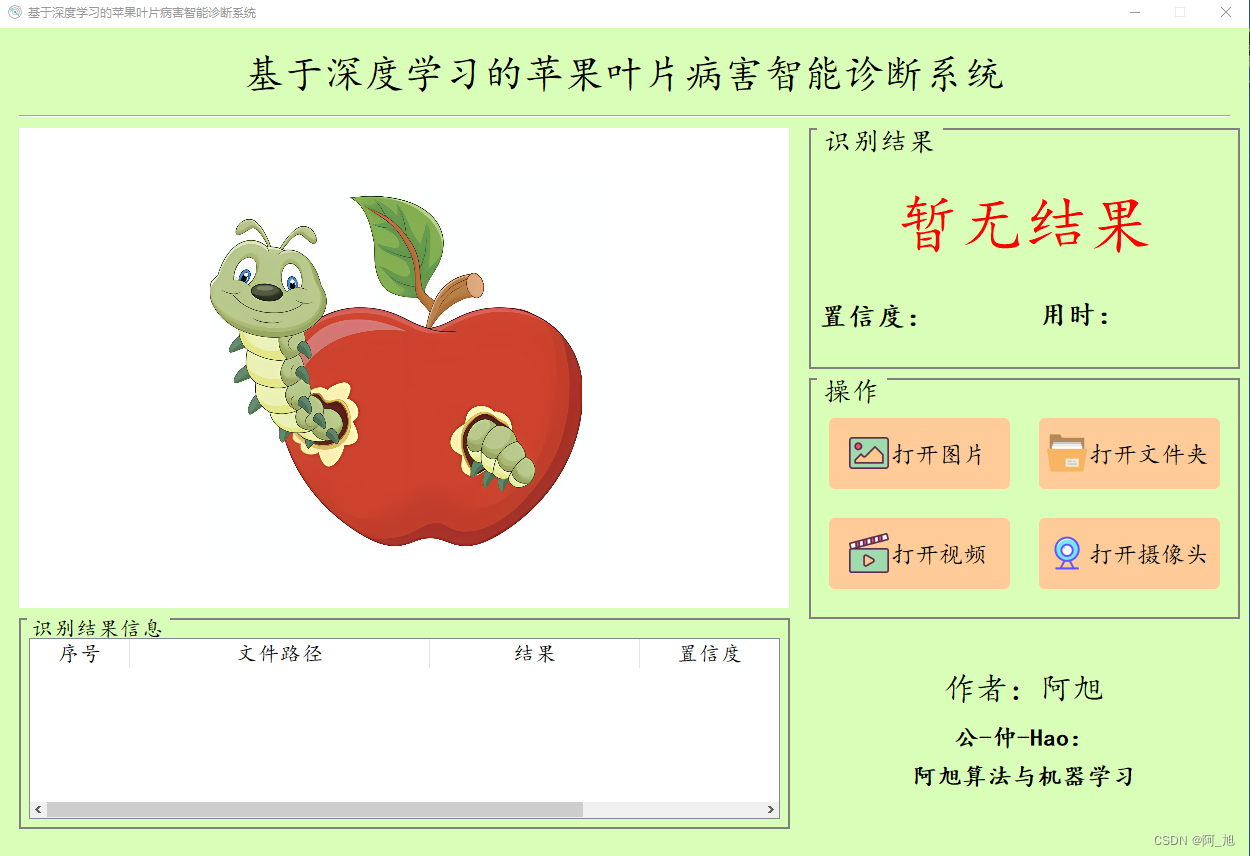 对苹果叶片病害智能诊断系统的相关程序感兴趣者,可获取全部程序档案。这包括源代码、数据集、训练脚本、用户界面文件以及测试用的图片和视频等资料。具体获取方法,请参阅文末的说明。